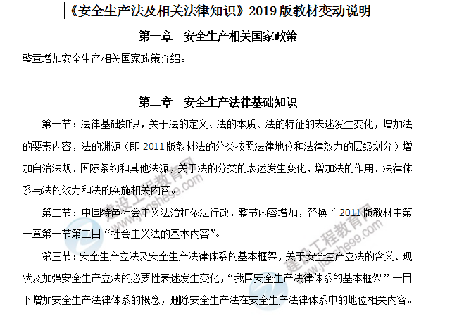 2019年中級(jí)安全工程師《安全生產(chǎn)法律法規(guī)》教材對(duì)比如下,希望考生認(rèn)真查看。