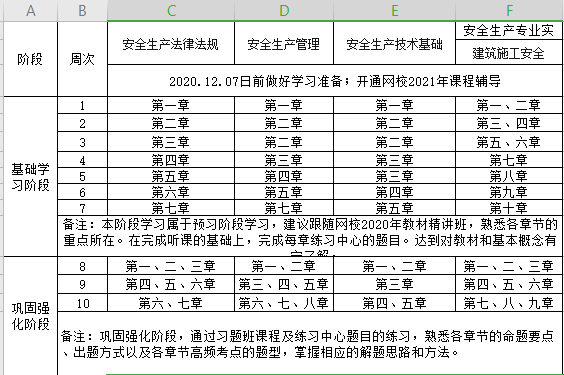 1、整體進(jìn)度說(shuō)明:預(yù)習(xí)階段從2020年12月開(kāi)始執(zhí)行,計(jì)劃于2021年8月結(jié)束,共計(jì)8個(gè)月(1.5-2月/科);其中:基礎(chǔ)學(xué)習(xí)階段安排7周,鞏固強(qiáng)化階段安排3周。學(xué)員可根據(jù)本表的提示,結(jié)合自己的工作,學(xué)習(xí)情況進(jìn)行細(xì)化,并按網(wǎng)校要求完成聽(tīng)課、做題的學(xué)習(xí)任務(wù),基本可滿足考試需要。