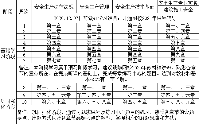 2、已報(bào)網(wǎng)校2021年安全工程師輔導(dǎo)高端班的同學(xué),將由班主任老師根據(jù)您的信息反饋及學(xué)習(xí)時(shí)間制定更詳盡的計(jì)劃表,如與本表不一致,請(qǐng)以班主任老師制定的學(xué)習(xí)計(jì)劃為準(zhǔn)。