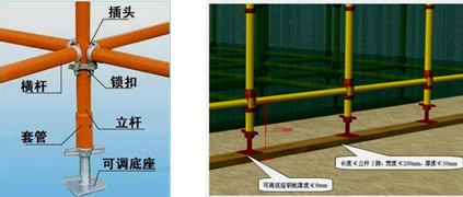 (2)可調(diào)底座和可調(diào)托座螺桿插入腳手架立桿鋼管的配合公差應(yīng)小于2.5mm。