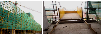 (4)施工升降機(jī)、龍門架和井架物料提升機(jī)等垂直運輸設(shè)備設(shè)施與建筑物間設(shè)置的通道平臺兩側(cè)邊,應(yīng)設(shè)置防護(hù)欄桿、擋腳板,并應(yīng)采用密目式安全立網(wǎng)或工具式欄板封閉。