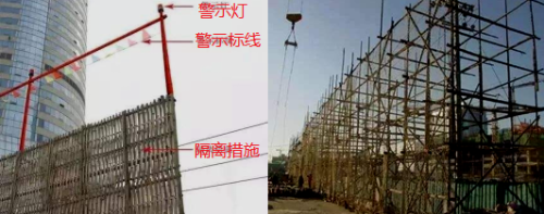 架空線路是目前較為普遍的輸電方式,當(dāng)施工現(xiàn)場及周邊存在架空線路時,應(yīng)保證施工機械、外腳手架和人員與電力線路的安全距離。有時候為了確保施工安全,則采取設(shè)置防護性遮欄、柵欄,以及懸掛警告標(biāo)志牌等防護措施。