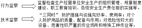 “三同時”防護措施與設(shè)施完好率、使用率;對個人防護用品的質(zhì)量、配備與作用;對危險性較大的設(shè)備、危害性較嚴(yán)重的作業(yè)場所和特殊工種作業(yè)等。