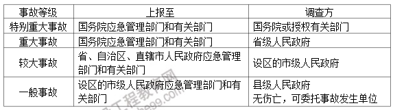 重大事故、較大事故、一般事故分別由事故發(fā)生地省級人民政府、設(shè)區(qū)的市級人民政府、縣級人民政府負責調(diào)查。省級人民政府、設(shè)區(qū)的市級人民政府、縣級人民政府可以直接組織事故調(diào)查組進行調(diào)查,也可以授權(quán)或者委托有關(guān)部門組織事故調(diào)查組進行調(diào)查。未造成人員傷亡的一般事故,縣級人民政府也可以委托事故發(fā)生單位組織事故調(diào)查組進行調(diào)查。