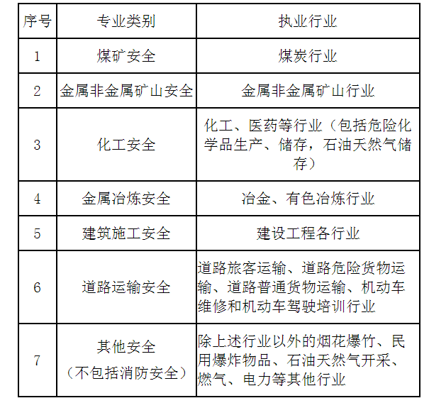 各專業(yè)類別注冊安全工程師執(zhí)業(yè)行業(yè)界定表