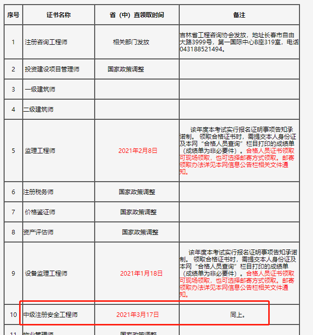 吉林省發(fā)布2020年安全工程師證書領取時間,安全工程師證書領取時間和領取地點如下。