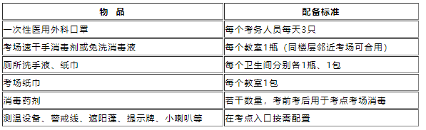注:盡量使用已有物資設備,請考點學校給予支持幫助,人事考試機構(gòu)力所能及給予保障。