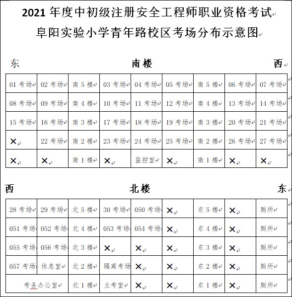 注意:(1)1-30考場(chǎng)為中級(jí)注冊(cè)安全工程師考試考場(chǎng);50-57考場(chǎng)是初級(jí)注冊(cè)安全工程師考試考場(chǎng)。