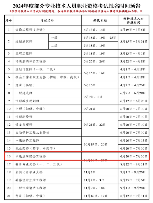 中國人事考試網(wǎng)公布2024年安全工程師報名時間6月20-7月10日