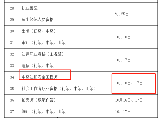 青海2021年安全工程師考試時間已經(jīng)公布,人力資源和社會保障部公布《2021年度專業(yè)技術人員職業(yè)資格考試時間表》,其中公布安全工程師考試時間為10月16日、17日,請2021年安全考生早日做好備考安排!