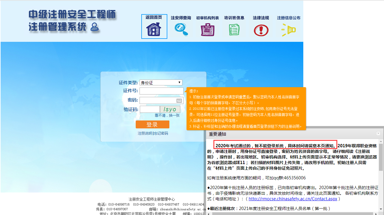安全工程師注冊管理系統(tǒng)暫不能登錄(2020年考試通過的考生)!