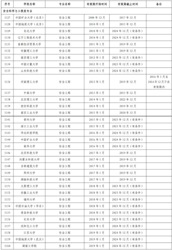 通過工程教育認證專業(yè)名單(安全科學與工程類專業(yè))