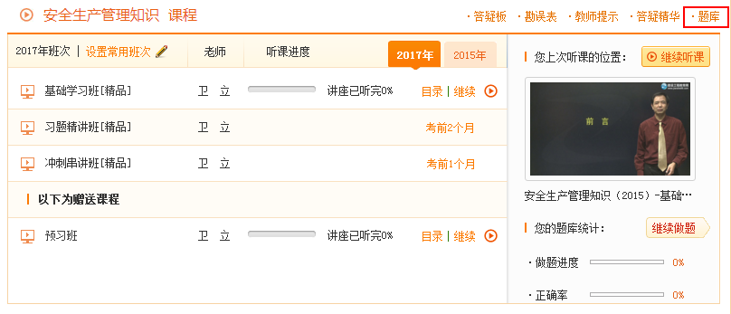 2017年安全工程師《安全生產(chǎn)管理知識》基礎(chǔ)班練習(xí)中心已開通