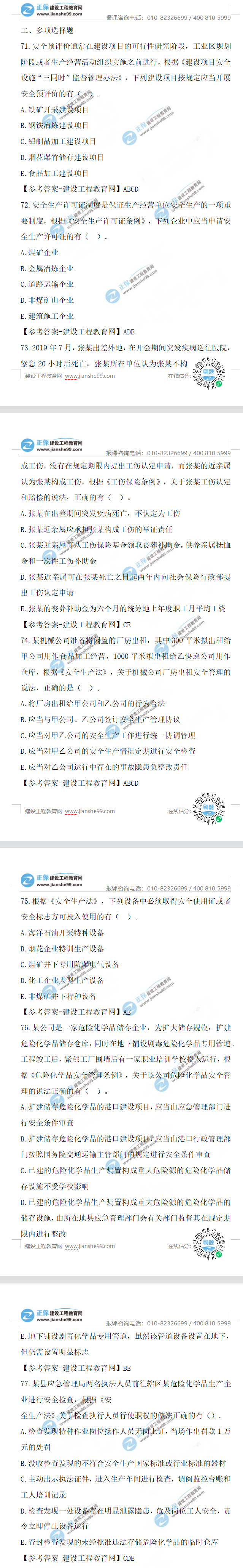 2021年安全工程師法律法規(guī)試題及答案解析71-85題
