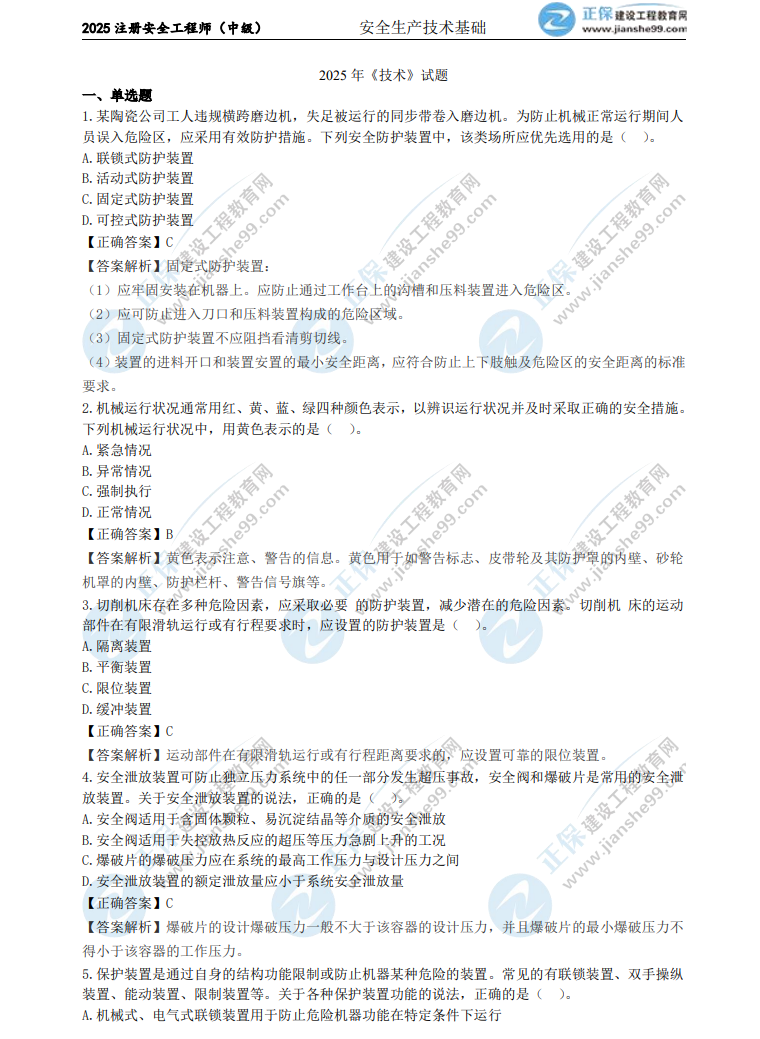 2025年中級安全工程師《生產(chǎn)技術(shù)》考試結(jié)束,考生們最關(guān)心的肯定是這一科目試題及答案。建設(shè)工程教育網(wǎng)考后會依據(jù)考生反饋,及時匯總中級安全工程師《生產(chǎn)技術(shù)》的試題及答案,期望能給各位考生提供幫助!