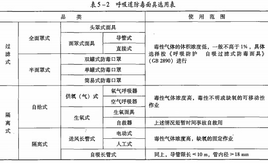 【解析】本題考查的是危險化學(xué)品的危害及防護(hù)。毒性氣體濃度高,毒性不明或缺氧的可移動作業(yè)應(yīng)選用自氧式防毒面具。呼吸道防毒面具選用表參見如下: