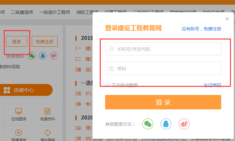 3、跳轉(zhuǎn)到BIM培訓(xùn)課程平臺 (身份證號密碼都是學(xué)員注冊時所留身份證號) 。