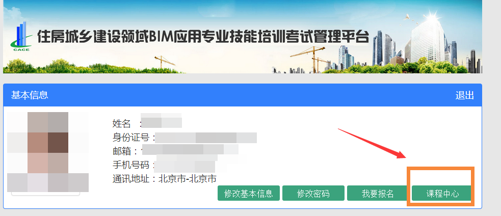 4、進入到基本信息頁面,點擊課程中心