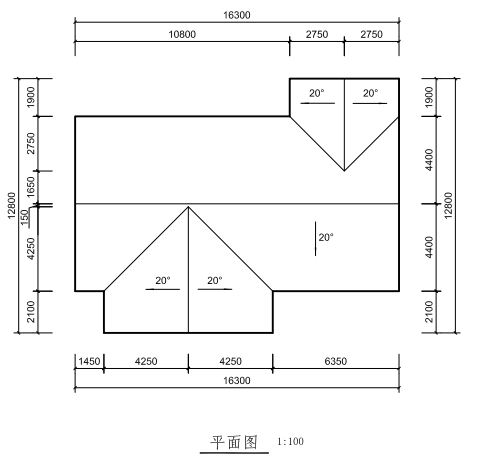 3、按照下圖平、立面繪制屋頂,屋頂板厚均為400,其它建模所需尺寸可參考平、立面圖自定。結(jié)果以“屋頂”為文件名保存在考生文件夾中。(20分)