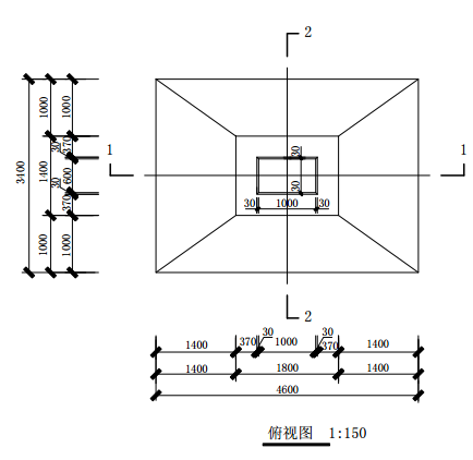 3、根據(jù)下圖中給定的投影尺寸,創(chuàng)建形體體量模型,基礎(chǔ)底標(biāo)高為-2.1米,設(shè)置該模型材質(zhì)為混凝土。請(qǐng)將模型體積用“模型體積”為文件名以文本格式保存在考生文件夾中,模型文件以“杯形基礎(chǔ)”為文件名保存到考生文件夾中。 (20分)