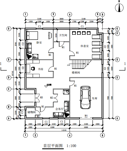2)門構(gòu)件集共有4種型號:M1、M2、M3、M4,尺寸分別為:900x2000、1500x2100、1500x2000、2400x2100.同樣的,窗構(gòu)件集共有3種型號:C1、C2、C3,尺寸分別為:1200x1500、 1500x1500、 1000x1200.