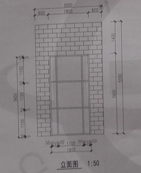 2.根據(jù)下圖,創(chuàng)建墻體與幕墻,墻體構(gòu)造與幕墻豎挺連續(xù)方式如圖所示,豎挺尺寸為100*50mm,請將模型以“幕墻”為文件名保存到考生文件夾中(20分)