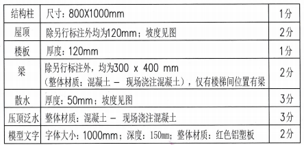 1)主要建筑構(gòu)件的參數(shù)要求如下表,未標(biāo)明尺寸與材質(zhì)不做明確要求。(16分)