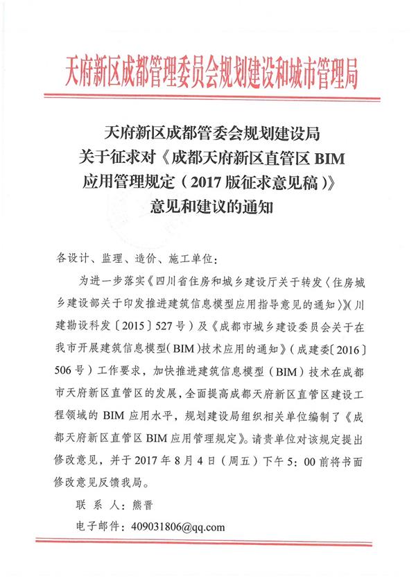 關(guān)于征求對(duì)成都天府新區(qū)直管區(qū)BIM應(yīng)用管理規(guī)定意見(jiàn)和建議