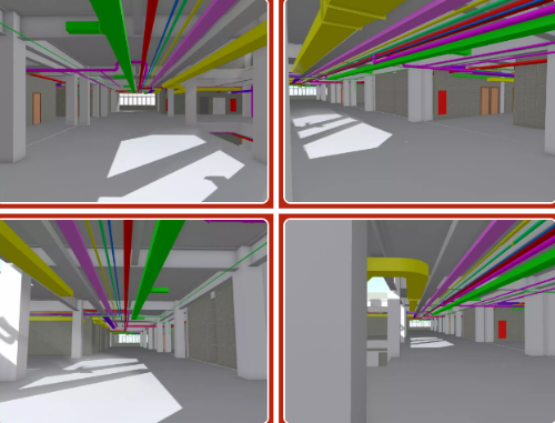 醫(yī)院項(xiàng)目管線相對(duì)一般綜合體項(xiàng)目具有體量大、種類多、復(fù)雜節(jié)點(diǎn)管線繁雜等技術(shù)難點(diǎn)。秦皇島市第一醫(yī)院使用BIM技術(shù)對(duì)各專業(yè)模型整合,進(jìn)行碰撞檢測(cè),預(yù)先深化調(diào)整,避免現(xiàn)場(chǎng)返工,確保工程進(jìn)度。