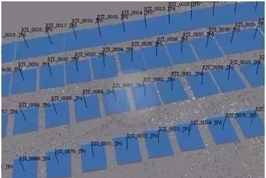 1.對齊照片:Photoscan會(huì)按照每張照片的經(jīng)緯度、高度和角度還原出每個(gè)鏡頭的位置,如圖示藍(lán)色鏡頭示意圖按照“之”字形依序排列。