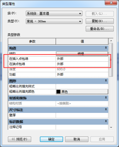 如上圖,墻設(shè)置里在插入點(diǎn)包絡(luò)指的是門窗等插入點(diǎn)包絡(luò),外部指核心層外部包絡(luò),內(nèi)部指核心層內(nèi)部包絡(luò),兩者指內(nèi)部外部都包絡(luò)。包絡(luò)的具體位置由插入構(gòu)件的勾選“墻閉合”的參照平面決定。
