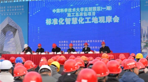 “提升安全品質(zhì),樹立標(biāo)化典范”。12月20日下午,來自全省數(shù)十家建筑單位的近千名企業(yè)代表齊聚在中國科學(xué)技術(shù)大學(xué)高新園區(qū)(一期)項目工地。一場由安徽省建設(shè)行業(yè)質(zhì)量與安全協(xié)會主辦,高新區(qū)建設(shè)發(fā)展局協(xié)辦、中建五局安徽公司承辦的標(biāo)準(zhǔn)化智慧化工地觀摩會在這里拉開帷幕。