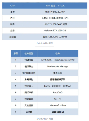 下面我們?cè)賮?lái)看一下本次BIM應(yīng)用的軟硬件配置: