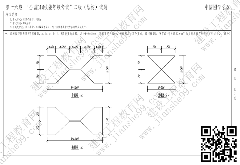 第十六期全國(guó)BIM技能等級(jí)二級(jí)(結(jié)構(gòu))試題第一題