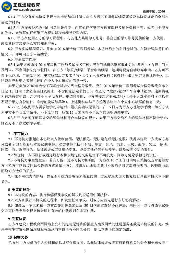 造價(jià)工程師“定制無(wú)憂(yōu)班”協(xié)議書(shū)