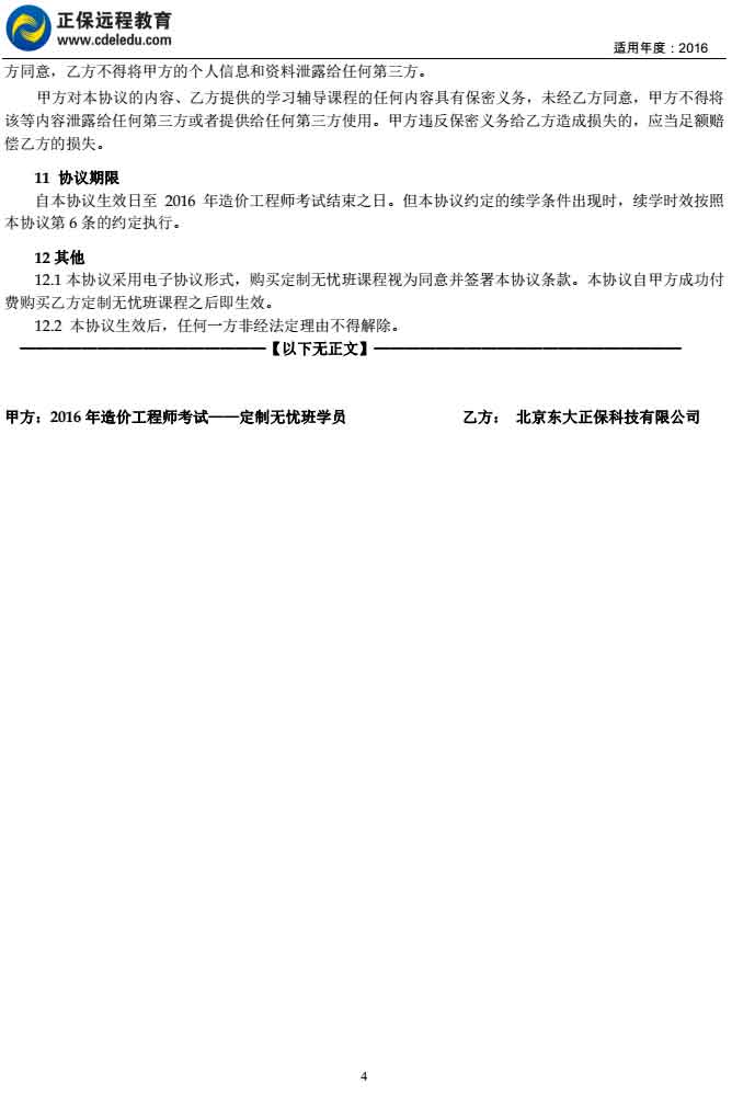 造價工程師“定制無憂班”協(xié)議書