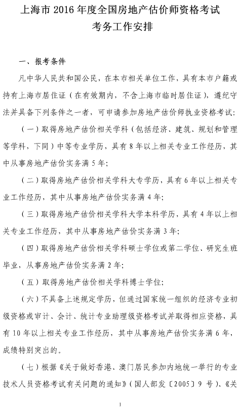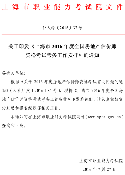 上海2016年房地產(chǎn)估價(jià)師資格考試考務(wù)工作安排