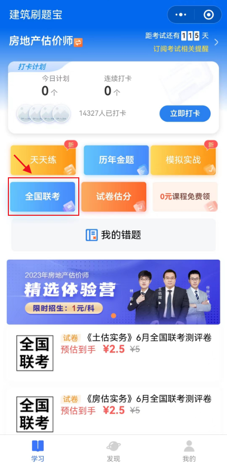 點擊“全國聯(lián)考”進入考試入口。