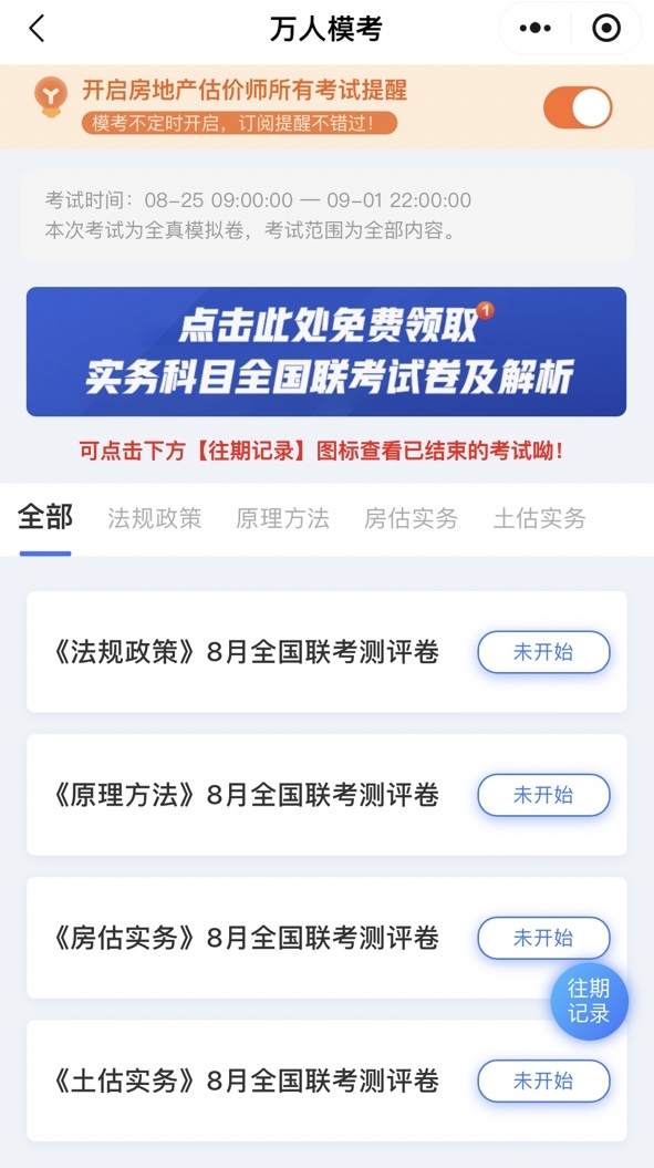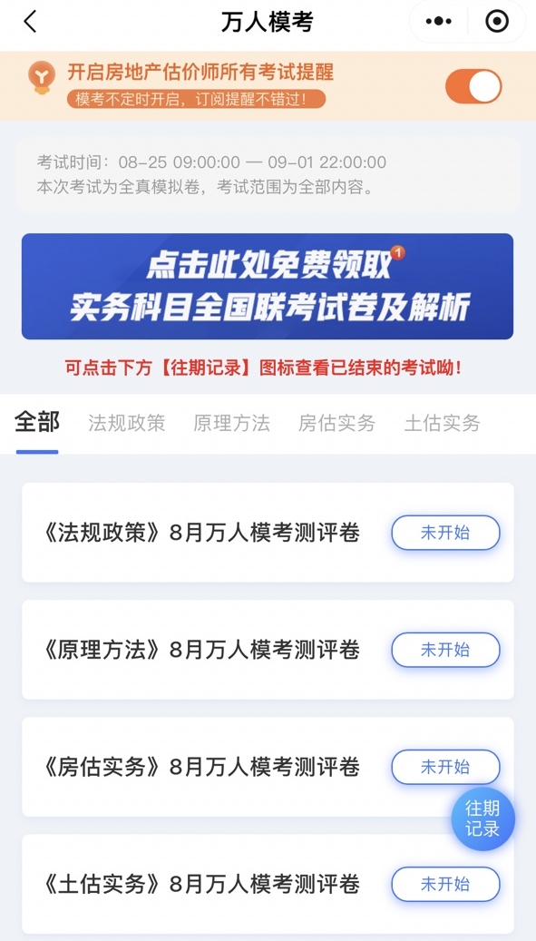 房地產(chǎn)估價(jià)師8月萬人??紩r(shí)間:8月25日9點(diǎn)-9月1日22點(diǎn)