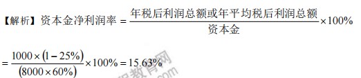 1.【例題?不定項】某投資者以 8000 萬元購買一棟寫字樓用于出租經營,其中的 40%為銀行提供的抵押貸款,其余為自有資金,經營期內年平均利潤總額為 1000 萬元,所得稅率為 25%, 則該項投資的資本金凈利潤率為( )。