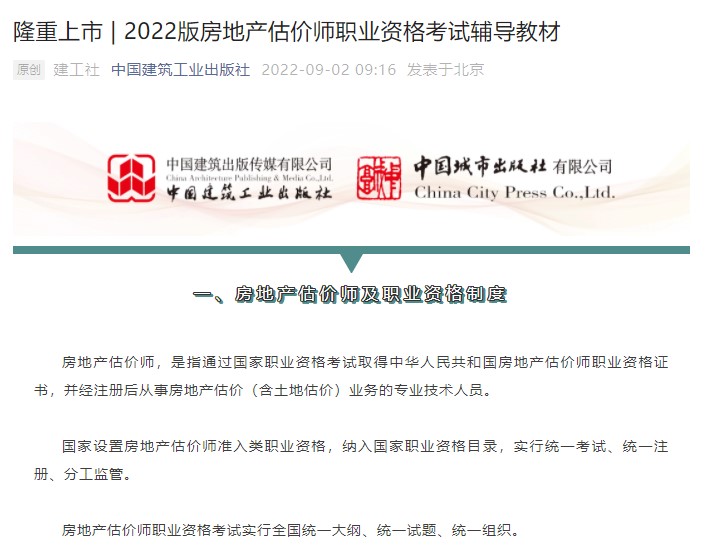 中國建筑工業(yè)出版社發(fā)表了文章,2022版房估輔導教材上市了!