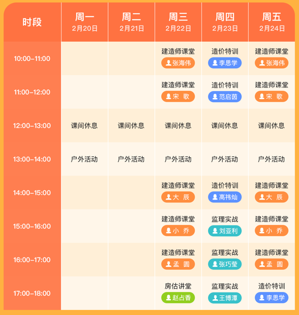 直播時間:2月22日起,上午10:00-12:00,下午14:00-18:00,各輔導(dǎo)直播安排見下方課表