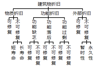 先把建筑物折舊分成:物質(zhì)折舊、功能折舊和外部折舊,分別測(cè)算,再加總求取建筑物折舊。