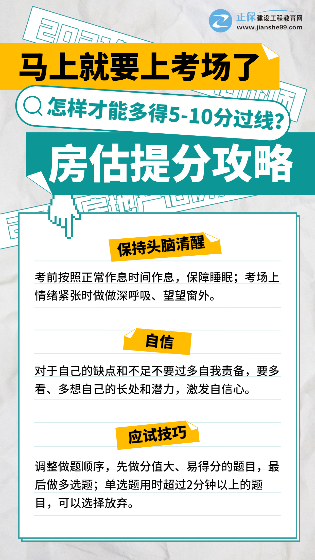 就要進(jìn)考場了,如何做才能短時間提高5-10分過線?房估考生必看