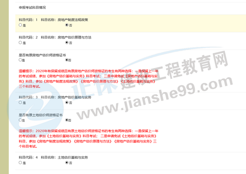 2.有土估證書,可以申請免試《土估實務》,參加其他三個科目考試;或者參加《土估實務》及剩余科目考試。