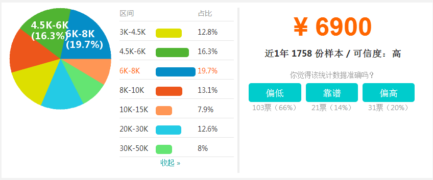 考過(guò)的同學(xué)最關(guān)注的無(wú)非是證書(shū)能帶來(lái)的直接效益,升職加薪是每個(gè)房估人想要達(dá)到的直接效果,但是目前市場(chǎng)上房地產(chǎn)估價(jià)師行業(yè)的薪資怎么樣,我們一起來(lái)扒一扒。根據(jù)職友集網(wǎng)站招聘信息來(lái)看,平均薪資在6K-8K的人數(shù)居多,占到19.7%。其次是4.5K-6K,占到16.3%。以下數(shù)據(jù)可以直觀的看出薪資占比。