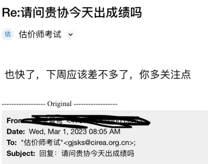 據(jù)網(wǎng)校房地產(chǎn)估價師學(xué)員反饋,中國房地產(chǎn)估價師與房地產(chǎn)經(jīng)紀人學(xué)會近期回復(fù)了考生關(guān)于2022年房地產(chǎn)估計師考試成績公布時間的相關(guān)問題:下周差不多公布。