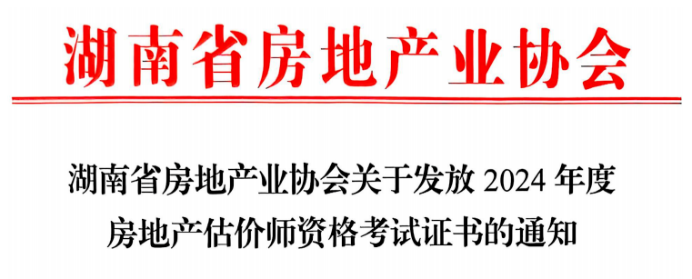 湖南省房地產(chǎn)業(yè)協(xié)會湖南省房地產(chǎn)業(yè)協(xié)會關(guān)于發(fā)放2024年度房地產(chǎn)估價師資格考試證書的通知