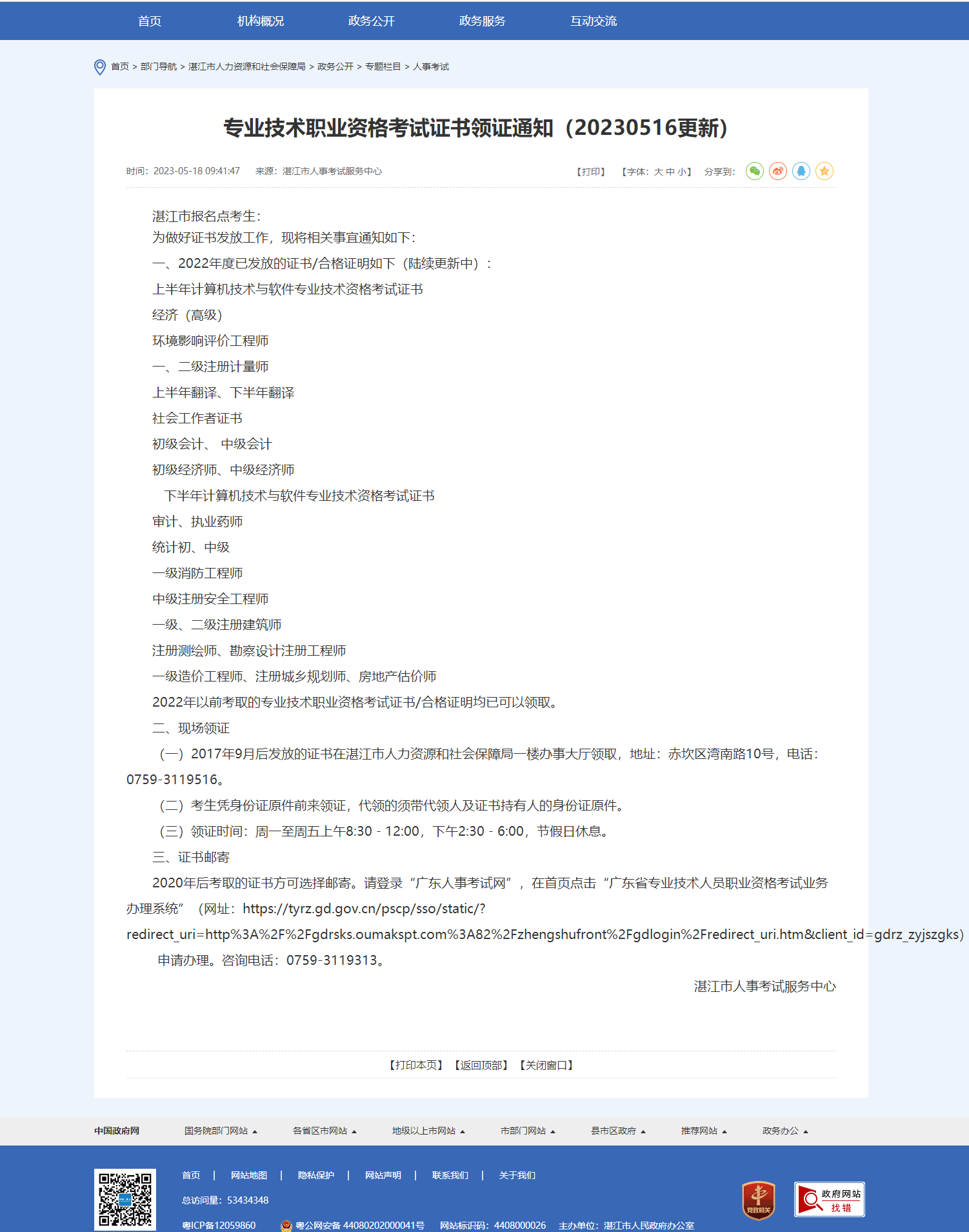 專業(yè)技術職業(yè)資格考試證書領證通知(20230516更新)