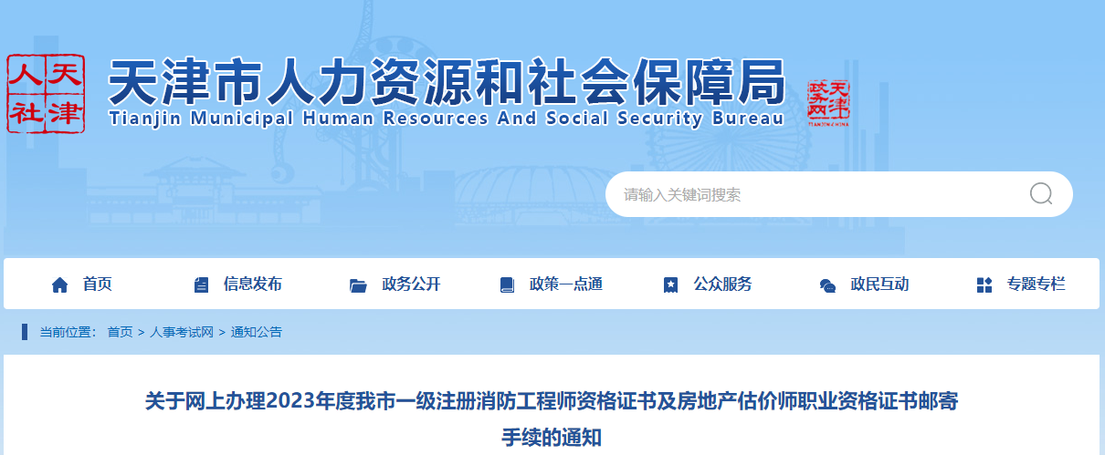 關(guān)于網(wǎng)上辦理2023年天津房地產(chǎn)估價師資格證書郵寄手續(xù)的通知